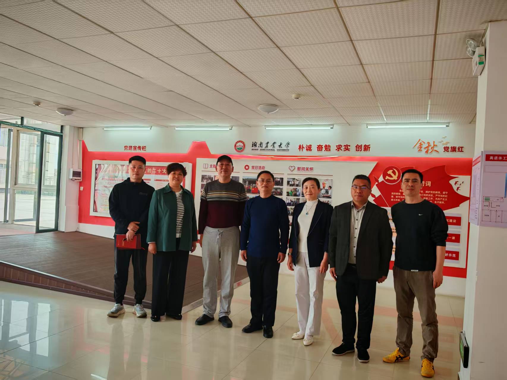 农大离退休工作处刘湘毅处长、尹华副书记、李中秋副处长先后农大离退休工作情况、特色做法、党建管理、制度建设等进行介绍,我校退休办谢勇主任也介绍了学校退休工作情况,同时双方就加强跨校交流协作、提升退休服务管理进行了讨论交流。会后,两校人员参观了农大退休人员学习活动室等阵地建设情况并一同合影留念。