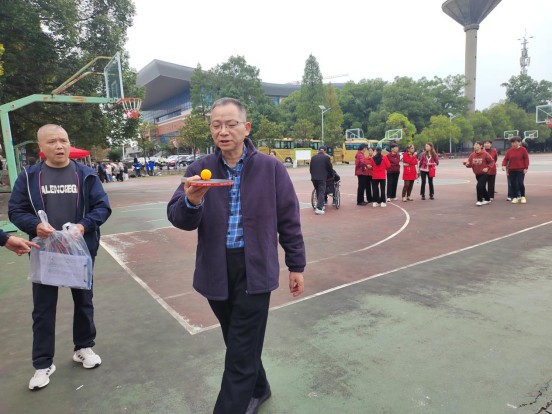 趣味保龄球项目现场笑语喧扬,老同志们手持特制软质彩球,稳扎马步、凝神瞄准,轻轻推出手中的球。随着彩球沿着球道缓缓滚动,一排排塑料瓶应声倒地,“全中!”的欢呼声此起彼伏,老同志们脸上绽放出孩童般的纯真笑容。托运乒乓球赛道上,大家手持球拍小心翼翼地托举着乒乓球,目光专注、步伐稳健,在平衡与速度的把控中稳步前行。偶尔出现的小球滑落,也丝毫不影响兴致,捡起球重新出发,身旁队友的加油鼓劲声让赛场暖意融融。
